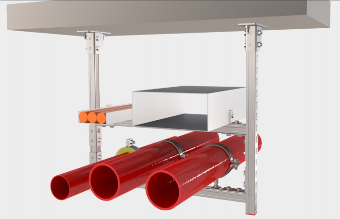 新型的裝配式支吊架的優勢:安裝簡易 施工安全 受力可靠 循環使用降低成本 組合安裝 效果美觀 節省空間