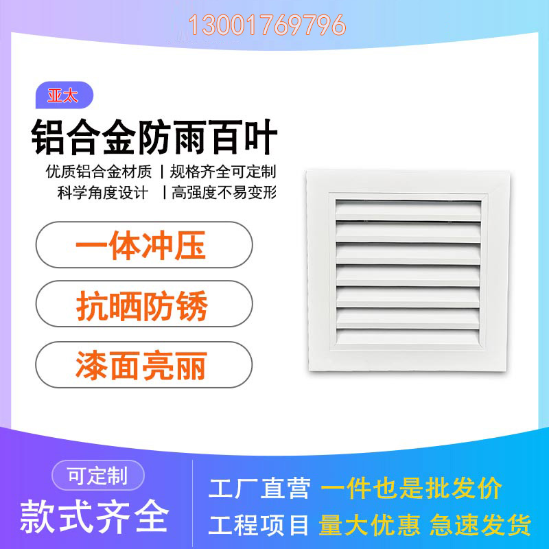 防雨百葉風口(鋁合金防水百葉風口)與回風百葉風口有相似的結構和相同的性能,其葉片設計成獨特的形狀,具有防止水濺入內部的功能,一般作安裝在外墻上的通風口。