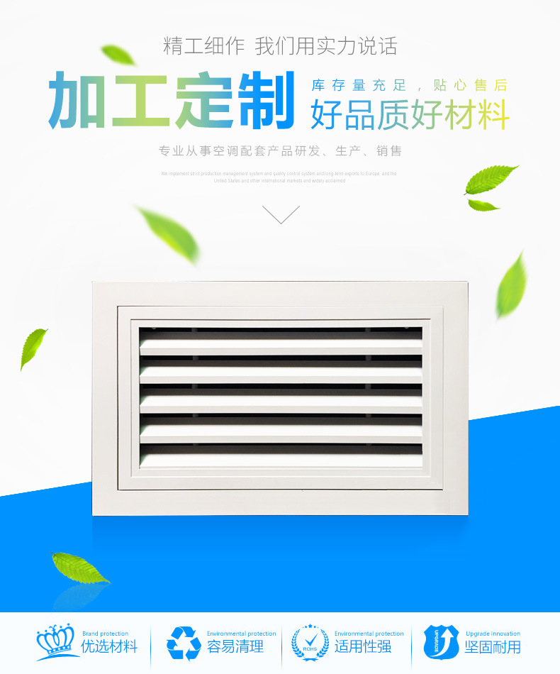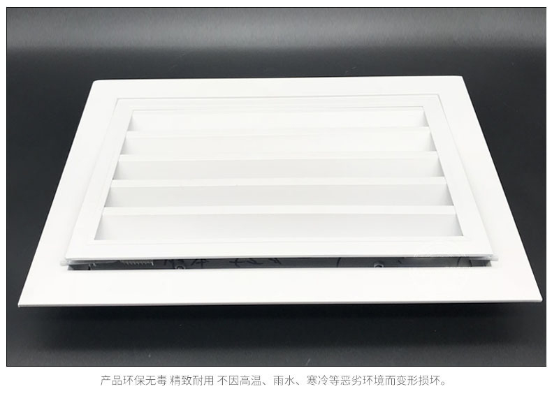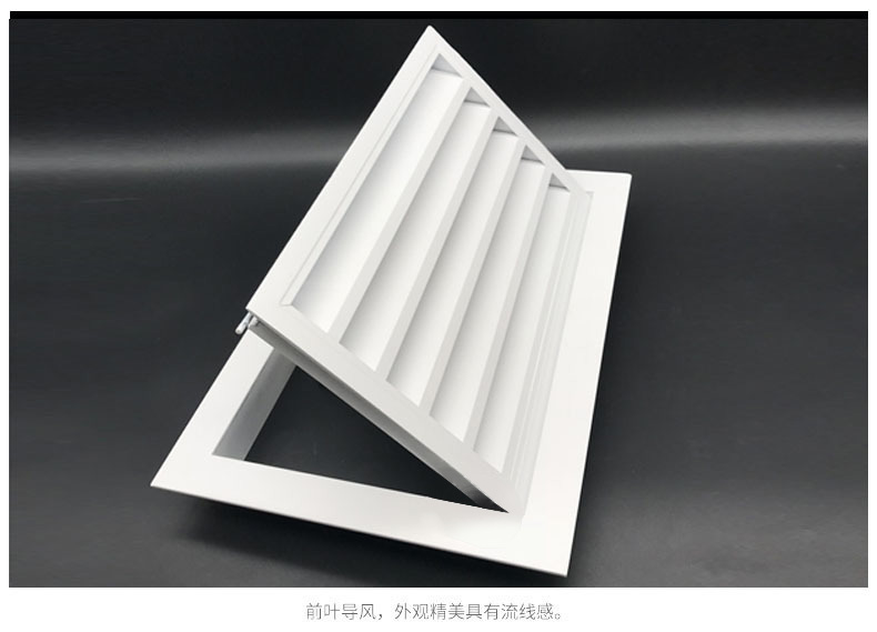 1、該風(fēng)口是固定格柵風(fēng)口的派生產(chǎn)品,增加一個(gè)可開的內(nèi)框,使葉片部分為一活動(dòng)門結(jié)構(gòu),撥動(dòng)活動(dòng)門的門閂即可將活動(dòng)門打開,便于安裝和維修。